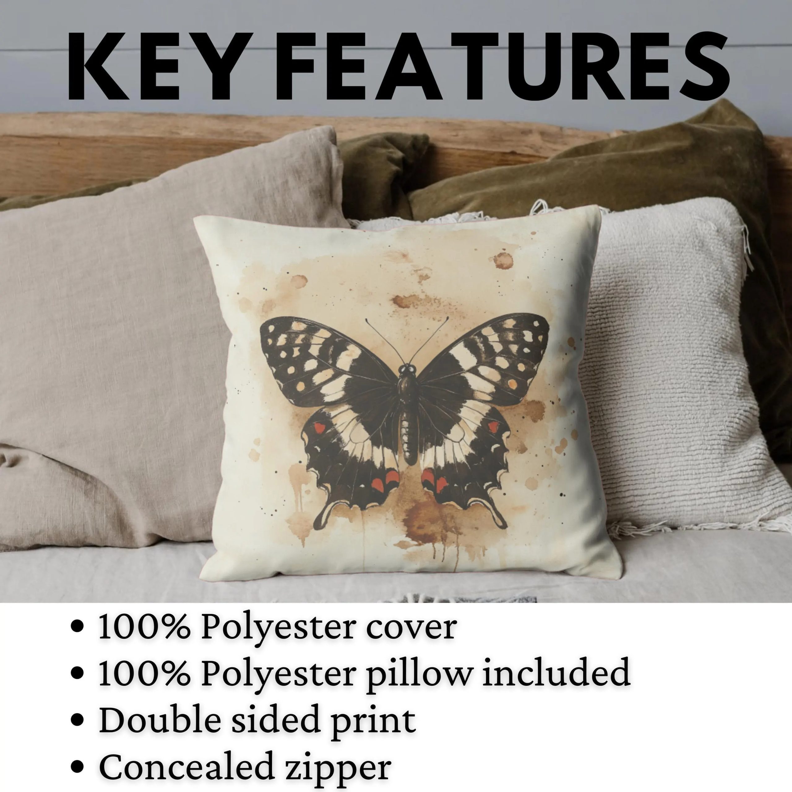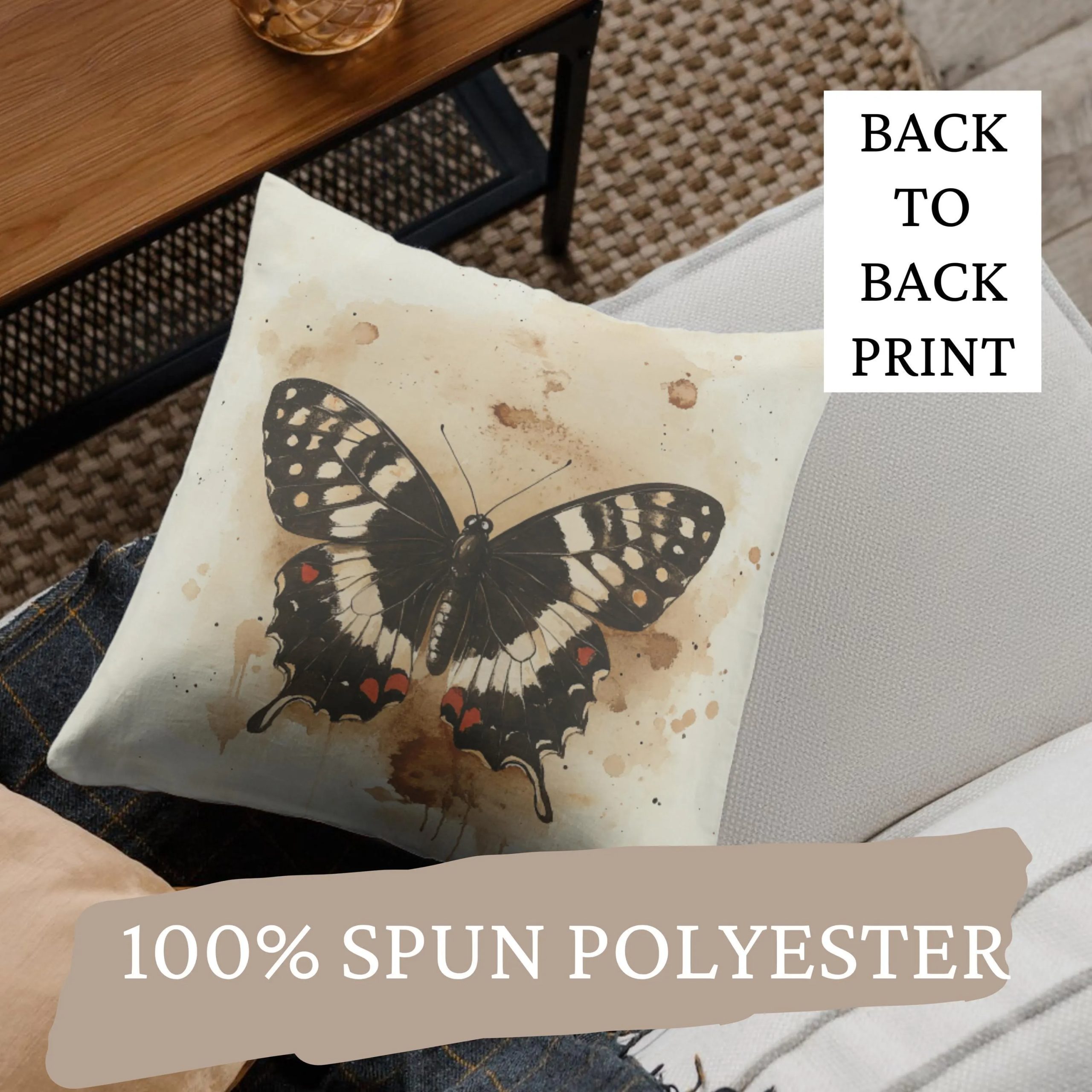 Quiet, refined, and softly artistic, this cushion brings a minimalist botanical charm to your space. The neutral backdrop keeps the design airy and versatile, while the dark butterfly creates a bold focal point with graceful contrast.